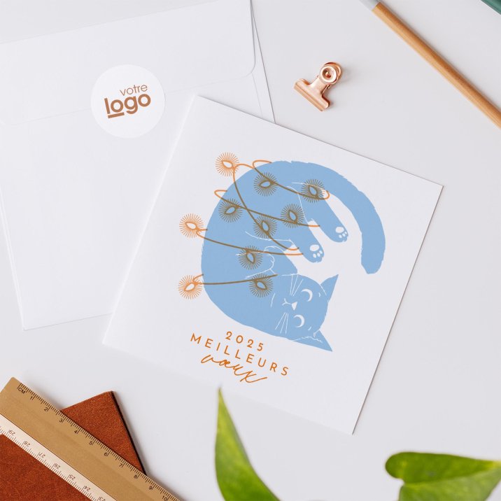 Adressez vos vœux professionnels avec une carte made in France, imprimée sur du papier haut de gamme et personnalisable avec votre logo, vos coordonnées et votre site internet.