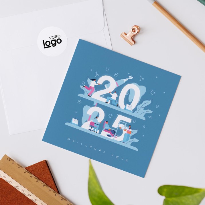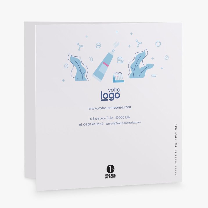 Adressez vos vœux professionnels avec une carte made in France, imprimée sur du papier haut de gamme et personnalisable avec votre logo, vos coordonnées et votre site internet.