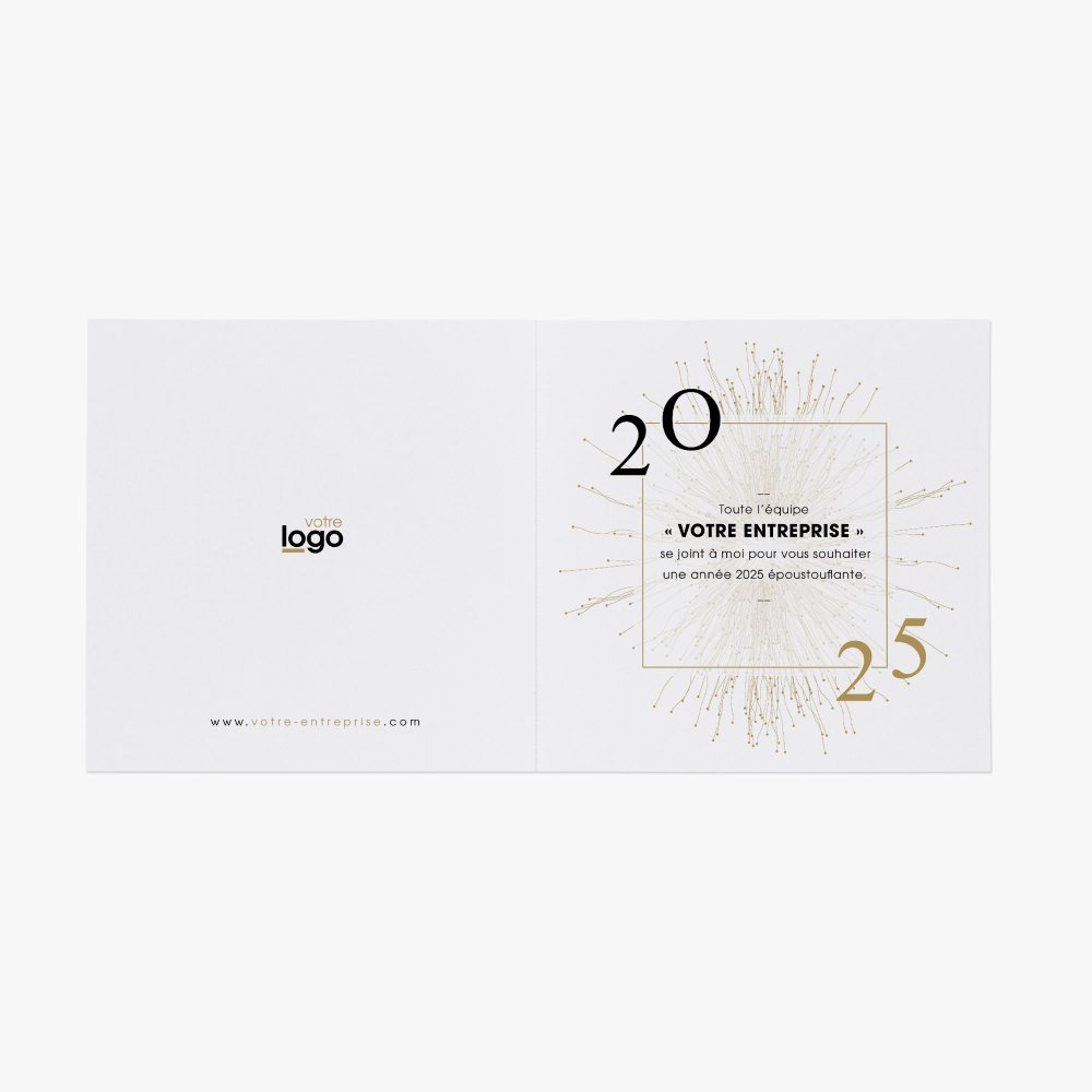 Adressez vos vœux professionnels avec une carte made in France, imprimée sur du papier haut de gamme et personnalisable avec votre logo, vos coordonnées et votre site internet.
