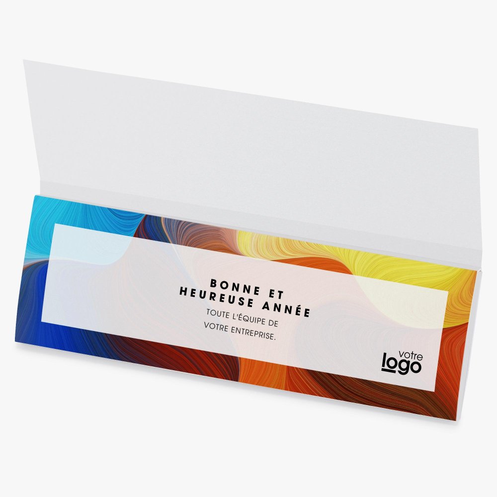 Nos étuis chocolats se personnalisent avec le logo de votre entreprise, vos contacts et adresse postale, ainsi que celle de votre site web. Un espace est également dédié à la formulation de vos vœux professionnels.