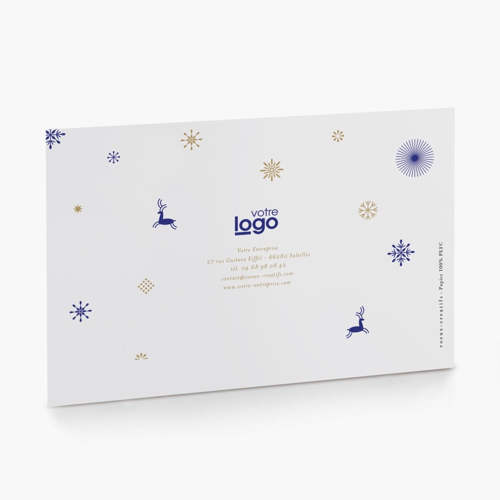 Personnalisable avec le logo de votre entreprise, vos contacts, votre adresse postale ainsi que votre site web, cette carte de vœux professionnelle originale ravira les plus gourmands de vos partenaires, collaborateurs et clients.