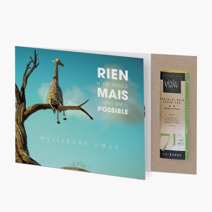 Surprenez avec cette carte de vœux gourmande et élégante ! Glissés dans une pochette, deux petits chocolats de dégustation accompagnent vos vœux, pour une attention raffinée qui ravira collaborateurs, partenaires et clients.
