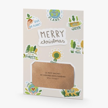 Partagez des vœux originaux et engagés, grâce à notre carte de vœux avec graines à planter. 100 % biodégradable et recyclable, cette carte est accompagnée d’un sachet de graines de fleurs sauvages colorées. Une attention qui surprendra assurément vos partenaires, collaborateurs et clients !